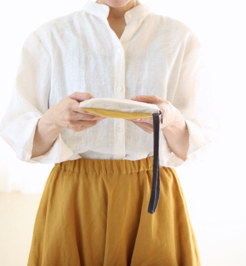 通帳やお薬手帳が入れやすいぺたんこポーチ【送料無料】コットンリネン(マスタード×ベージュ)