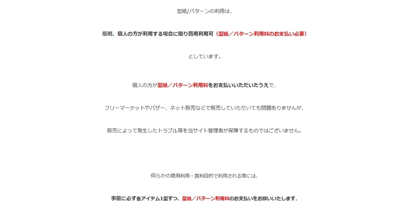 【型紙・パターンの商用利用・営利目的の詳細について】