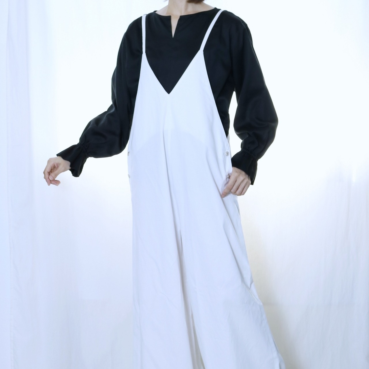 また、オーバーオールやキャミソールワンピースと合わせても、袖口のデザインが華やかになります。