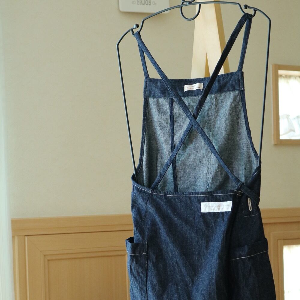 91cm丈スリットバッククロスエプロン /8オンスムラ糸デニム(インディゴブルー)