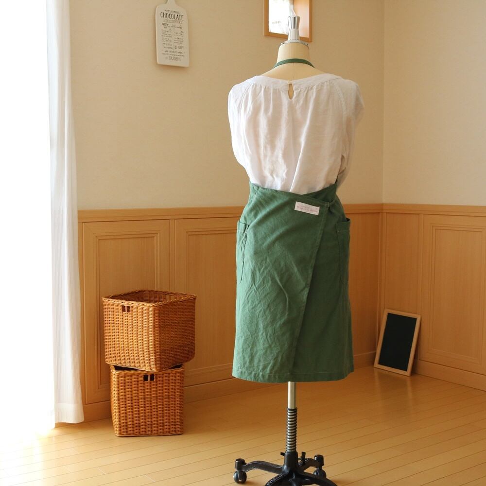 84cm丈ホルターネックエプロン/コットンリネン(アッシュグリーン)
