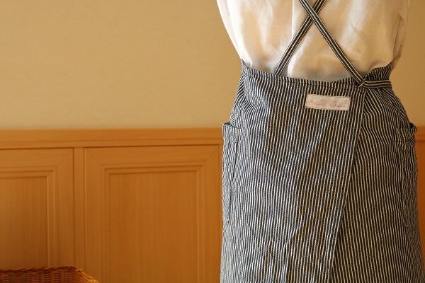 F様オーダー商品/117cm丈バッククロスエプロン/ヒッコリーストライプ(紺)