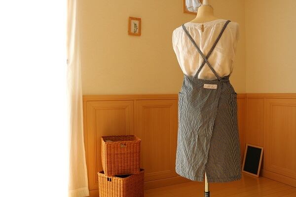 丈は、胸当てから裾までで117cm、身巾は、103cmです。